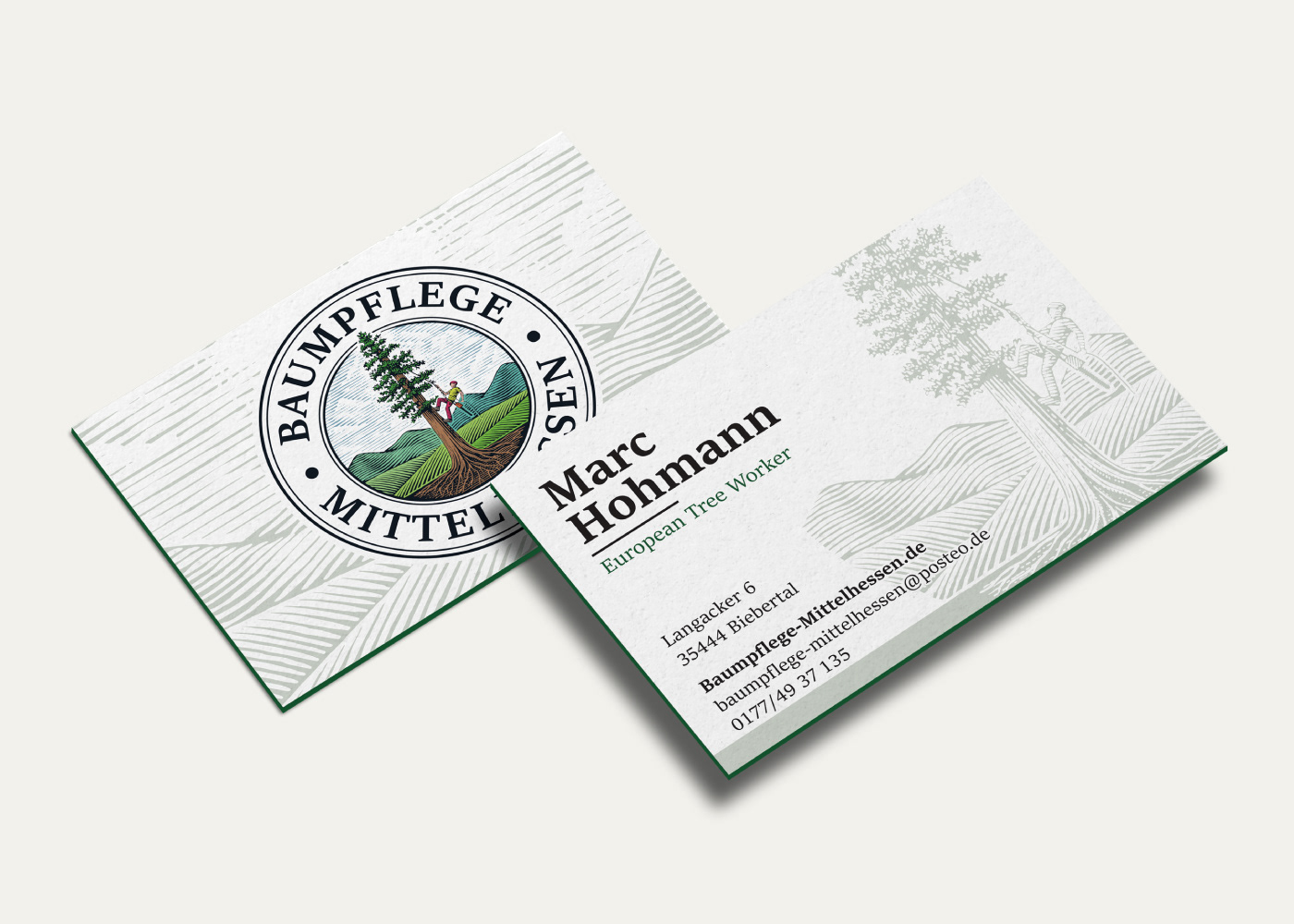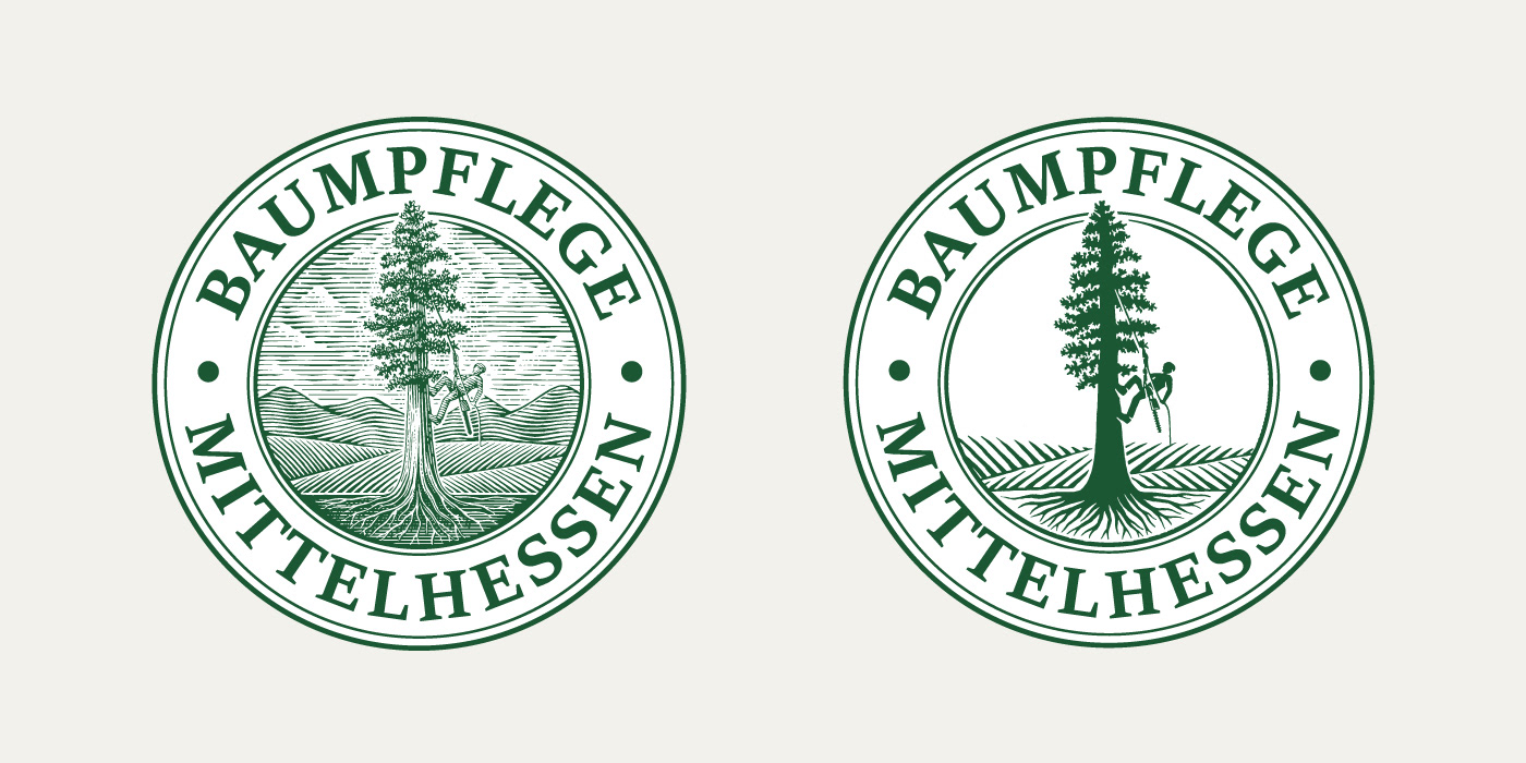 The Baumpflege Mittelhessen identity uses an illustrated man who climbs the tree and represents the climbing technique (rope climbing) that characterizes the company. 2 versions of the logo were created for different applications.